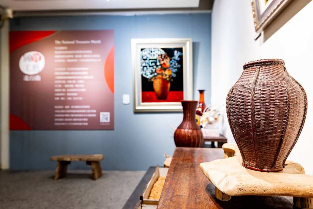 ▲《國寶工藝進行曲》展覽即日起至8月15日在新瓦屋客家文化保存區展覽館盛大登場,展場入口玄關即可看見展覽作品。(新竹縣文化局提供)《國寶工藝進行曲》展覽將於6月7日舉辦開幕活動,邀請3位重磅級工藝家竹籐編人間國寶張憲平、國寶級藝師漆工藝王賢志、竹編工藝涂素英親臨展場分享交流。展覽期間也將搭配講堂、體驗、習作及研習課程等推廣活動,邀請展出工藝師指導授課,帶領民眾深入了解、領略國寶工藝的奧妙,體驗傳統技法的力與美。