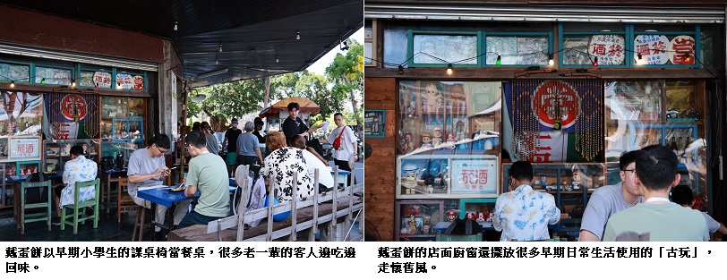 戴雅卉說,這些古玩,有些是親戚贈送的,有些則是自己到淘寶網購買的。騎樓下供客人坐的桌椅,則是搜購早期學生使用的「老式木製課桌椅」,讓客人邊吃邊懷舊。
