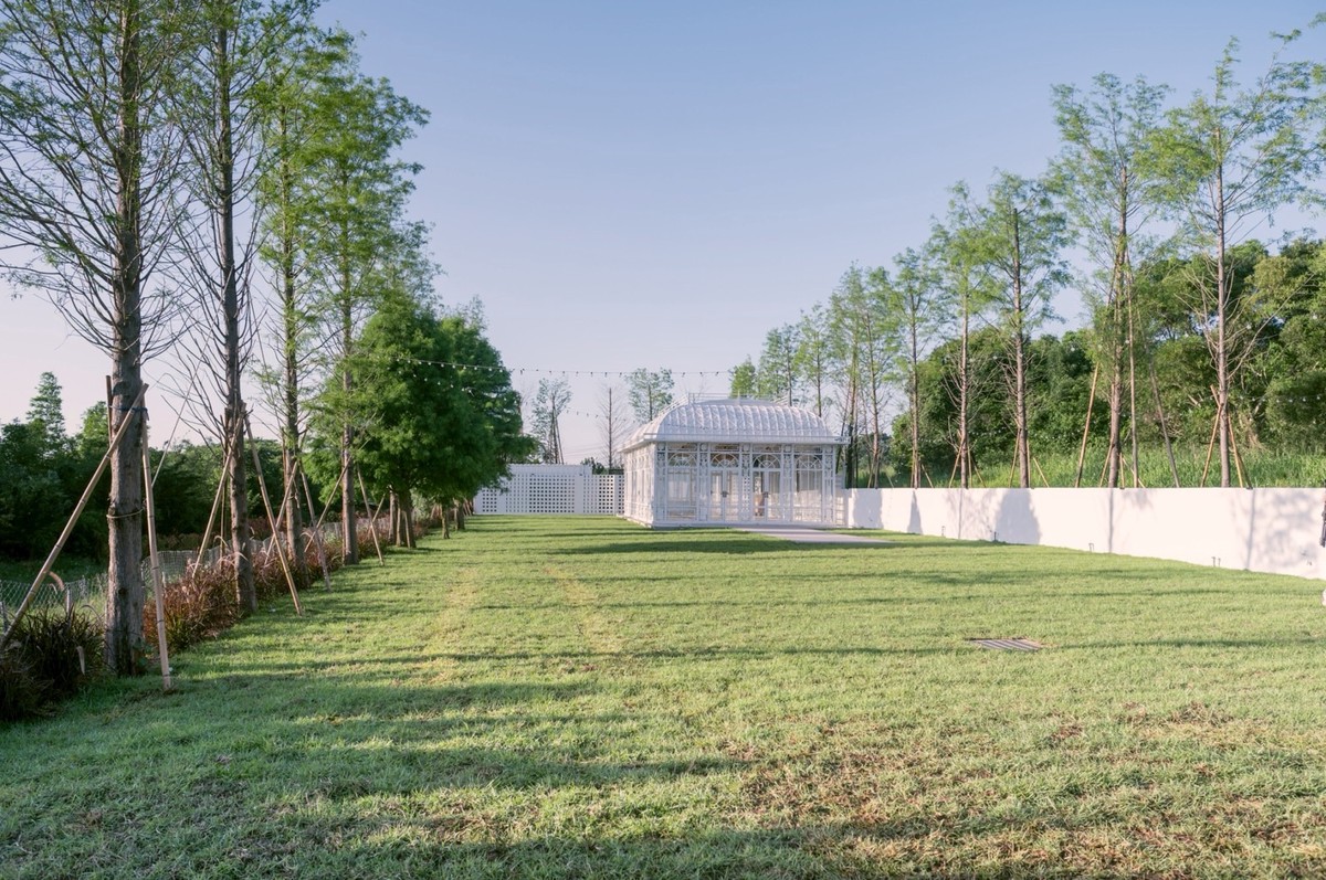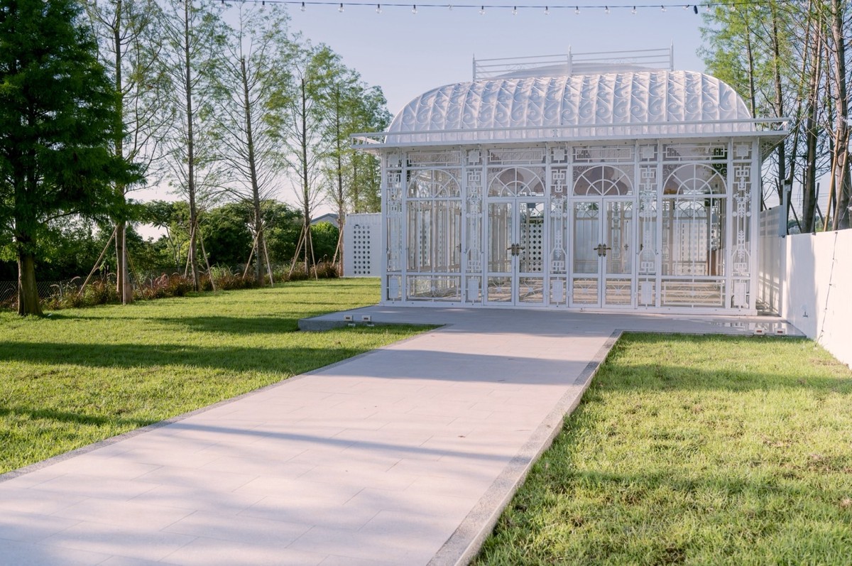 這座全新婚宴場地位於台中市郊,交通便利卻保有靜謐氛圍,整體規劃以「高隱私、親自然、全方位、歐式浪漫」為核心,打造出難得一見的夢幻婚宴空間。戶外部分設有 400坪寬敞大草皮,可容納高達 350人 同時參與婚禮。另有 專屬證婚場地、落雨松步道、戶外舞台、路口迎賓區與獨立造型間,滿足現代高質感婚禮需求的新人細節需求。