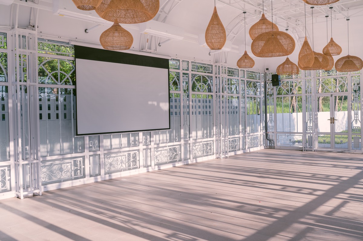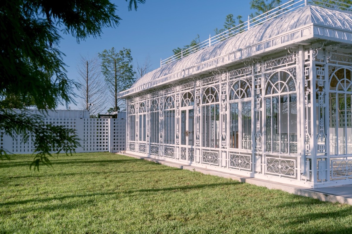 室內空間則以「歐式玻璃屋」為主題,整體風格浪漫典雅,最多可容納 80人,適合舉辦小型婚禮家宴、迎賓酒會、產品分享會或家庭聚會等。配備 空調系統、KTV娛樂設備及專業投影音響,讓婚宴活動無論晴雨都能順利進行。