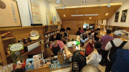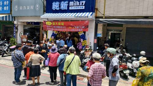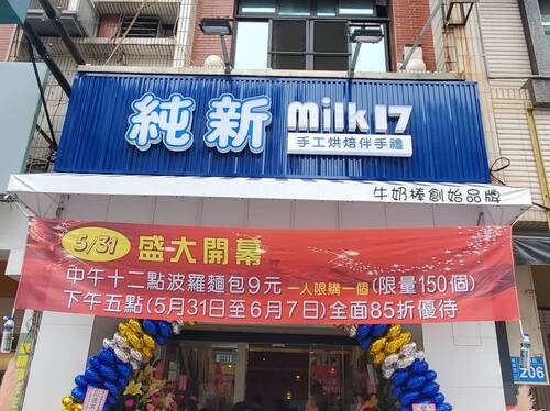 在地經營31年來,已經培養了許多的忠實顧客,加上近年來在網路上的發展,「牛奶棒姐姐」潘世貞帶著女兒們,已經將「純新Milk17」擠身網紅名店,也難怪今天武廟路旗艦店新店開張,12點開始的限量9元菠蘿麵包正式出爐,店門口早已擠滿了排隊的人潮。其中,更有一名婦女遠從台南趕來排隊,拿到號碼牌便盡情選購。