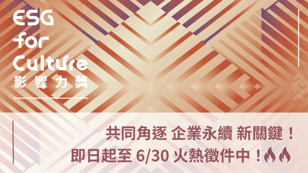 隨著ESG已成企業發展與成長的關鍵策略,「文化內容」正迅速躍升為企業推動永續發展的關鍵力量。不僅能以多元形式深化企業精神、品牌價值,更是延伸政府政策與企業評鑑的重要新標的。由文化部所屬文化內容策進院(TAICCA)主辦的首屆【ESG for Culture影響力獎】開放徵件中,截止日期為6月30日。誠摯邀請具文化內容實績企業踴躍參與,共同角逐企業永續新殊榮。