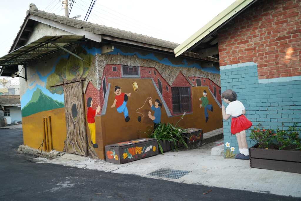 ▲大肚區大東社區 懷念ㄟ𨑨迌迷ㄚ。(台中市都市發展局提供)都發局指出,建築園冶獎由民間自主發起,是建築界重要指標性獎項,評選對象涵蓋公私領域具綠美化特色的建築與空間設計,不僅強調建築本體創新,更重視社區整體生活環境的營造與人本精神。
