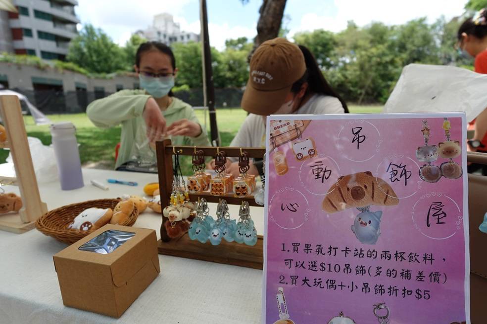 ▲學生參與一日店長活動,推出各式優惠刺激買氣。市集攤位主題多元,涵蓋健康飲食、設計創意與互動體驗,包含:「蛋の創作」、「之織的(zhicrochet)」、「哈密刮」、「火熱可可」、「創新椰肉能量棒」、「IDOL MART」、「肌動恢復室」等。其中,「IDOL MART」結合粉絲文化與視覺設計,引發熱烈互動;「肌動恢復室」則在教師建議下明確市場定位,成功吸引大量預約。
