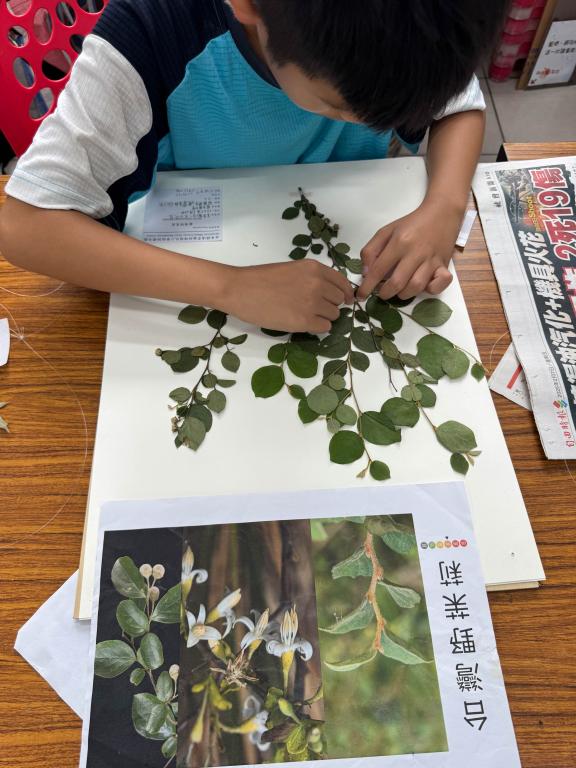 今年度課程以「認識在地植物、記錄家鄉生態」為主軸,共規劃兩梯次活動。首梯課程於5月21日進行,由林業試驗所研究人員帶領學生走入嶺頂、牛車路生態路線,觀察並採集包含臺灣野茉莉、山芝麻、野牡丹等原生植物,學習植物辨識、記錄與採集技巧。課程中讓孩子們瞭解「為何這裡有這麼多珍稀植物」、「何時最適合採集」、「為什麼要壓製標本」等知識概念,並說明標本的長期科學價值。學生親手壓製的標本,後續並由林業試驗所帶回標本館進行烘乾與冷凍除蟲程序。