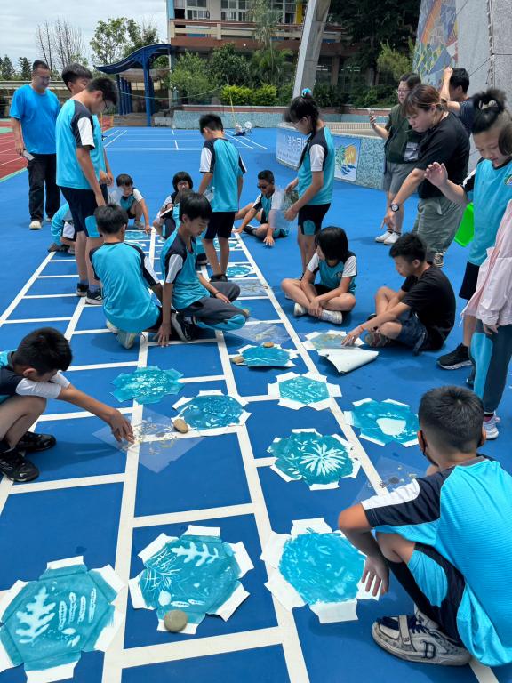 ▲藍曬創作課程體驗,操場也是自然科學與藝術創作場域。(圖/林保署新竹分署提供)