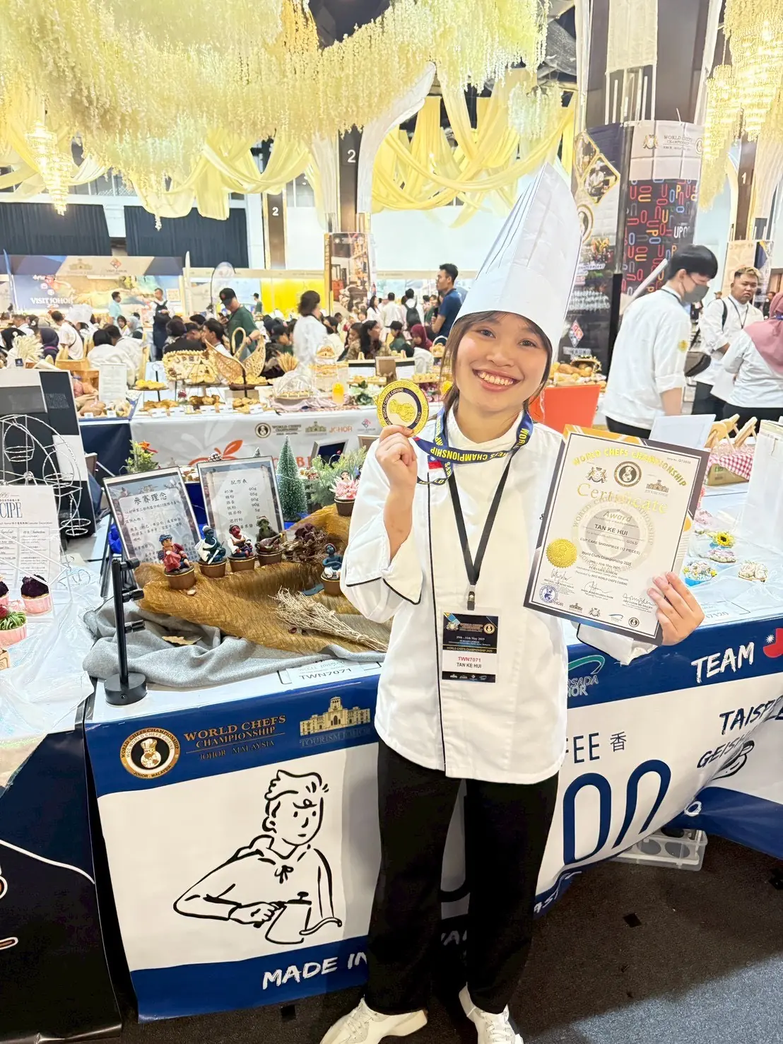 台灣代表隊表現亮眼,共有超過150位選手參與,包括來自16所大專院校與業界廚師。玄奘大學餐旅管理學系此次由湯彩群老師帶領兩位外籍生跨海參賽,成果斐然。馬來西亞籍學生陳可蕙在「杯子蛋糕組」項目中憑藉細膩獨特的創意與精湛技術勇奪金牌;印尼籍學生葉馨涵則在高手如雲的「聖誕彩繪餅乾組」中脫穎而出,同樣榮獲金牌佳績,為校爭光,也為台灣教育與廚藝國際化添上精彩一筆。