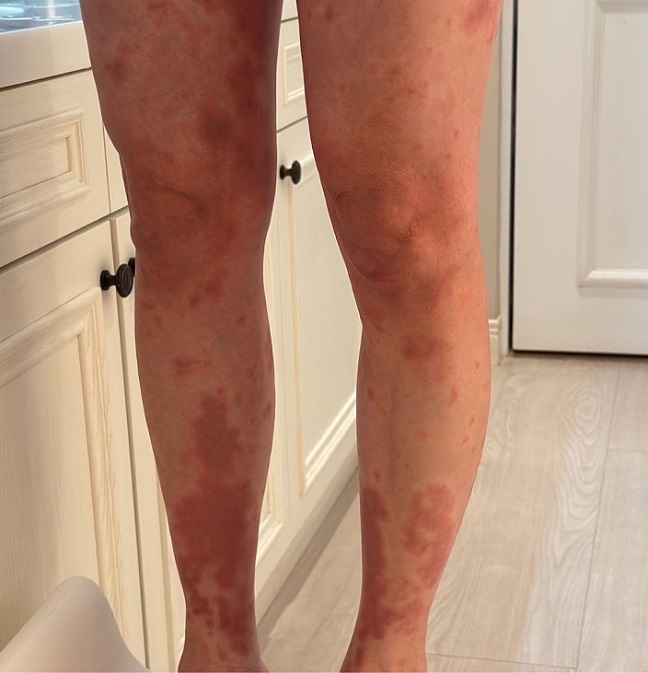 【記者 陳姿穎/台北 報導】坐月子坐到全身起疹子、癢到拿冰袋敷才睡?這樣的產後夢魘,發生在嫁日太太Peggy身上。雙手露出的肌膚滿佈紅腫突起的蕁麻疹,範圍從腳、小腹到手臂無一倖免,夜裡癢到無法入睡,只能靠冰敷緩解。過去從未有過敏史,卻在產後出現妊娠性蕁麻疹!