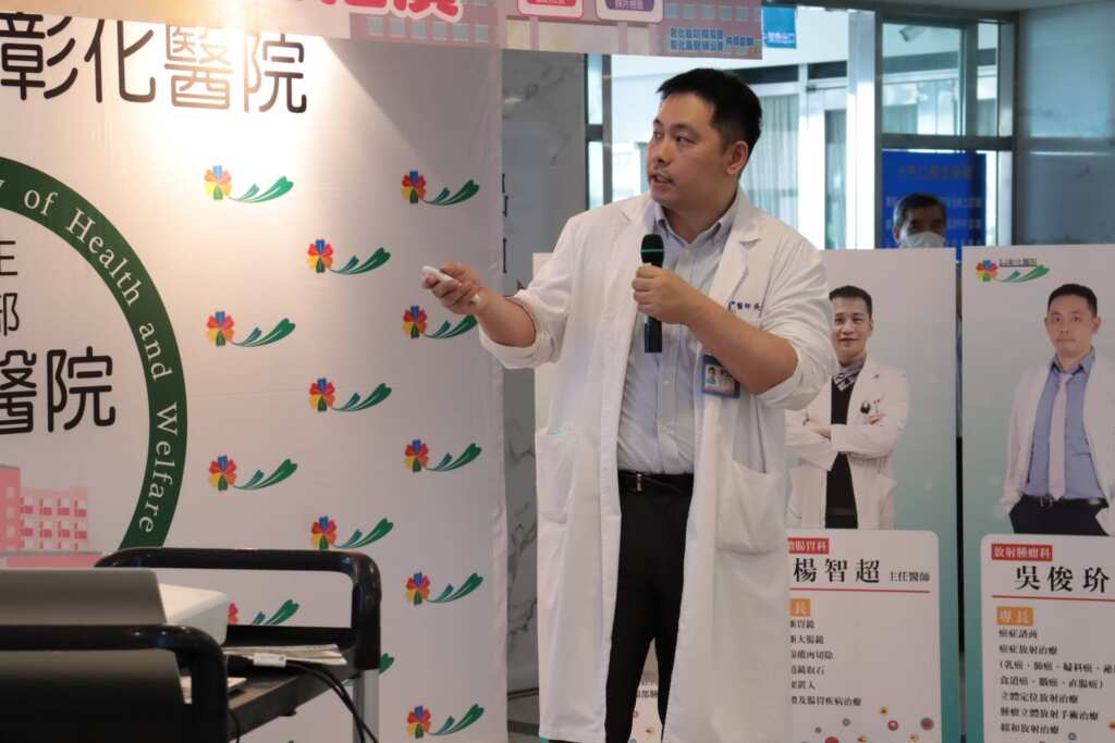 ▲彰化醫院放射腫瘤科主任吳俊玠分享,定期檢查、及早發現,能大幅提高治癒率與生活品質,並有機會進行乳房保留手術,對患者情緒支持與自信有正向幫助。(記者林明佑攝)彰化縣衛生局副局長蕭惠玲、彰化醫院院長曾孔彥及彰化縣防癌協會理事楊玉隆、理事黃啟民及總幹事張靜文等人,在場同聲呼籲民眾踴躍參與癌篩。曾孔彥指出,這次活動透過醫師解說與實例分享,並進行癌篩抽獎,提高民眾對免費五癌篩檢(乳癌、子宮頸癌、大腸癌、口腔癌、肺癌)的認識,期望讓更多人關心自身健康。蕭惠玲說,符合癌篩資格的彰化縣民,每完成1項即可領取100元禮券,做越多領越多,最多可領600元,呼籲大家一起來癌篩。