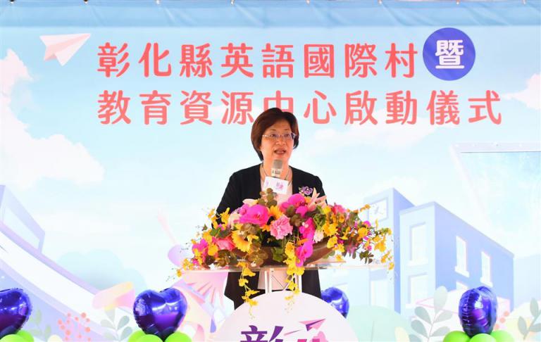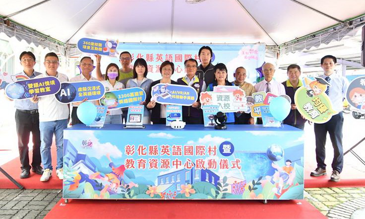 彰化縣政府5日在永興國小辦理「英語國際村暨偏遠教育資源中心啟動儀式」,縣長王惠美與民代等人與會。王縣長表示,縣府推動接軌國際與教育平權,在56所學校設立56所英語國際村,共投入3,300萬元,協助建置 AI 情境教學,學生可以透過 AR、VR 跟 AI 科技,透過趣味學習互動學習英文,讓背英文不再只是背單字、背片語,可以用更先進的科技來引導,讓孩子開口說英文,把語言變成生活上的一部分,翻轉教育。