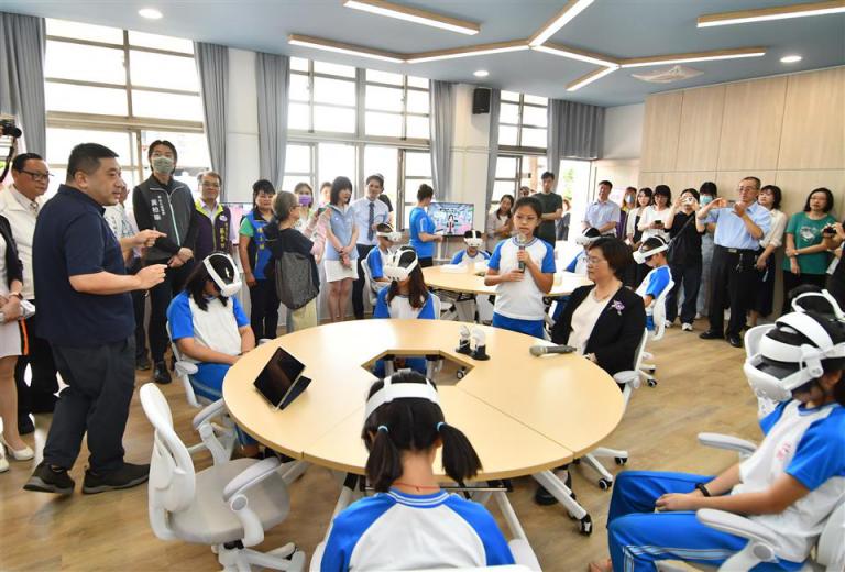 ▲學生可以透過 AR、VR 跟 AI 科技,透過趣味學習互動學習英文,讓背英文不再只是背單字、背片語。(圖╱彰化縣政府提供)