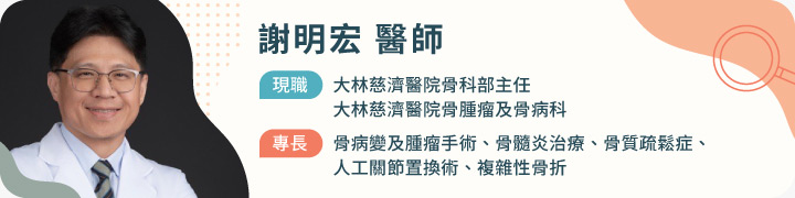 骨鬆性骨折後帶來的併發症更不容忽視。謝明宏部主任表示,「若因骨鬆導致骨折進而長期臥床,可能因此無法正常如廁、引發泌尿道感染,或是痰久久未咳出而導致肺炎,這些併發症可能造成生命風險。」此外,也因為無法運動而產生肌少症,導致身體的免疫力下降等,其他的慢性病也會更難控制。
