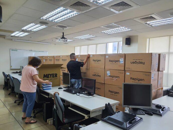 ▲三重區因人數較多,正進行快篩劑清點。(圖/新北市社會局提供)