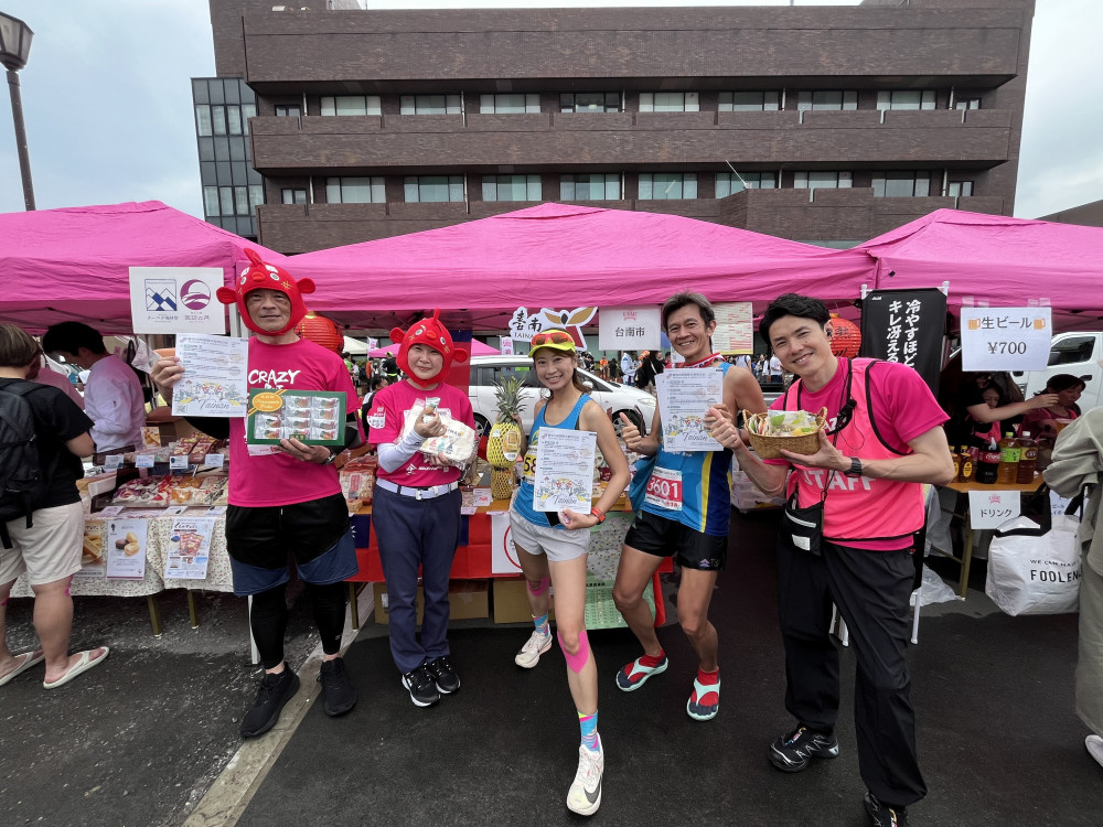 【大成報記者杜忠聰/臺南報導】為拓展臺南農漁特產國際能見度,臺南市政府農業局首次參與2025年6月8日於日本靜岡縣「伊豆稲取KINME馬拉松活動」,並設置「臺南農特產推廣攤位」於終點線,展示在地最具代表性的農漁特產品,吸引眾多日本民眾駐足體驗、了解臺南的農漁業文化與產品特色,成功讓臺南優質農漁產曝光於國際舞台。