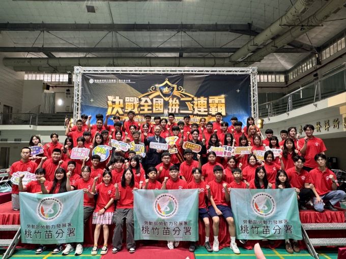 【記者 彭慧婉/桃園 報導】第55屆全國技能競賽即將於7月16日至20日在南港展覽館盛大登場!勞動力發展署桃竹苗分署今年在全國技能競賽分區賽中大放異彩,橫掃23金、31銀、35銅,共有186位培訓選手晉級全國賽,準備角逐工業機械、銲接、漆作裝潢、餐飲服務等52項職類桂冠。為鼓舞選手凝聚戰力,桃竹苗分署於6月10日集結晉級選手舉行誓師大會,喊出氣勢磅礡的口號「決戰全國 再創佳績」,頓時現場氣氛嗨到最高點。