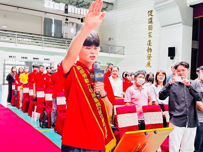 ▲桃竹苗分署銲接職類選手宋偉騏代表進行選手宣誓。其中,本屆全國賽苗栗農工冷凍空調職類選手陳星宇,自實習課程中發掘出對技能的興趣後,他積極投入訓練,儘管曾因技術落差及心理壓力面臨挑戰,仍憑著堅持與努力逐步成長,從第54屆中區分區賽獲得佳作,到本屆中區分區賽勇奪金牌,他以實際行動詮釋:「努力不一定馬上成功,但不努力一定無法成功」,展現青年技職選手堅毅不拔、追求卓越的精神風貌。