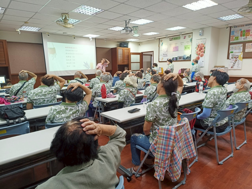 【大成報記者杜忠聰/臺南報導】嘉南藥理大學「二仁溪流域後現代城鎮漣漪翻轉策略:擴散河海聚落振興力量」USR計畫,日前在校內銀髮俱樂部舉辦「健康促進芳香藝術體驗營」,特別邀請高雄市永安區永華社區的長輩參與,透過香氛與運動的結合,帶領長者一起動起來、健康一起來,更親身體驗難得的大學生活。