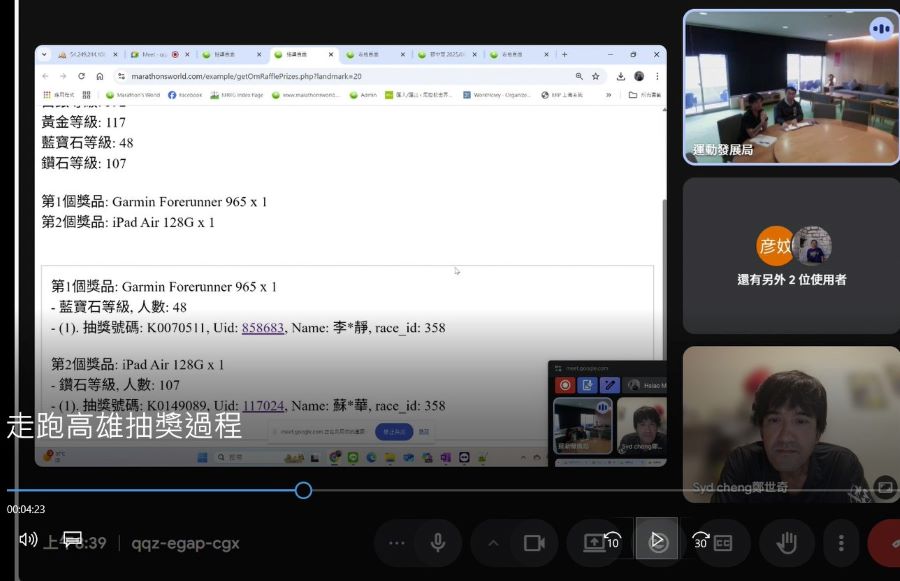 ▲由運動發展局局長侯尊堯連線見證抽景點等級大獎。「走跑高雄2.0」自2月28日啟動至6月10日止,參與者透過每日健走或跑步任務,結合智慧型手機或穿戴裝置蒐集勳章、累積抽獎券,搭配全市24處運動熱點設計,引發一波波蒐集熱潮。只有集滿24枚景點勳章、晉升為「鑽石級跑者」的107位參加者,才有資格抽取景點等級最大獎——iPad Air,最終由來自3比8跑團的蘇先生中獎。他開心表示「平常下班固定跑10公里,沿途經過幾個景點,就會繞一下蒐集勳章,假日還會跟跑團練長距離解鎖景點!」。