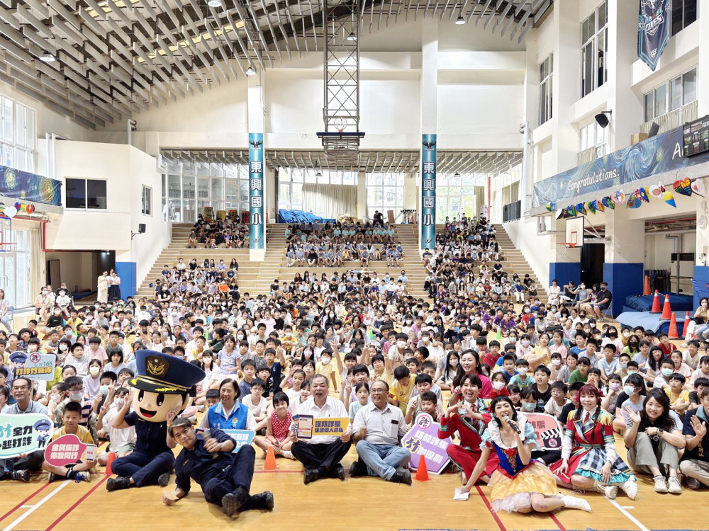 新竹縣東興國小今(6/12)日上午舉辦「藝起反詐騙公益演唱會」,邀請藝人唐玲、陳子強、洪暐哲、泡泡姊姊精彩演出與孩子同樂,活動穿插反詐騙的有獎徵答,在座東興國小與竹東員崠國小800多位學生熱烈舉手回應,現場嗨翻天,寓教於樂宣導反詐騙成功!
