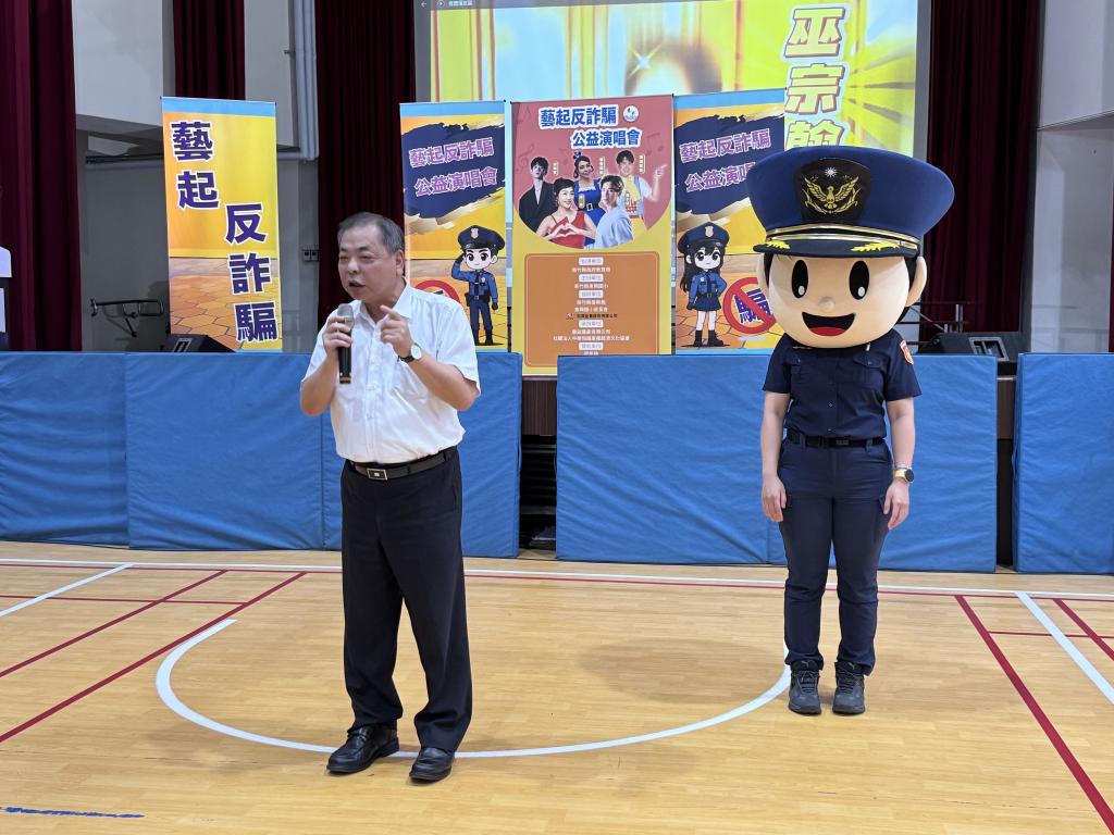 ▲新竹縣東興國小今(6/12)日上午舉辦「藝起反詐騙公益演唱會」,副縣長陳見賢致詞。(圖/竹縣府提供)