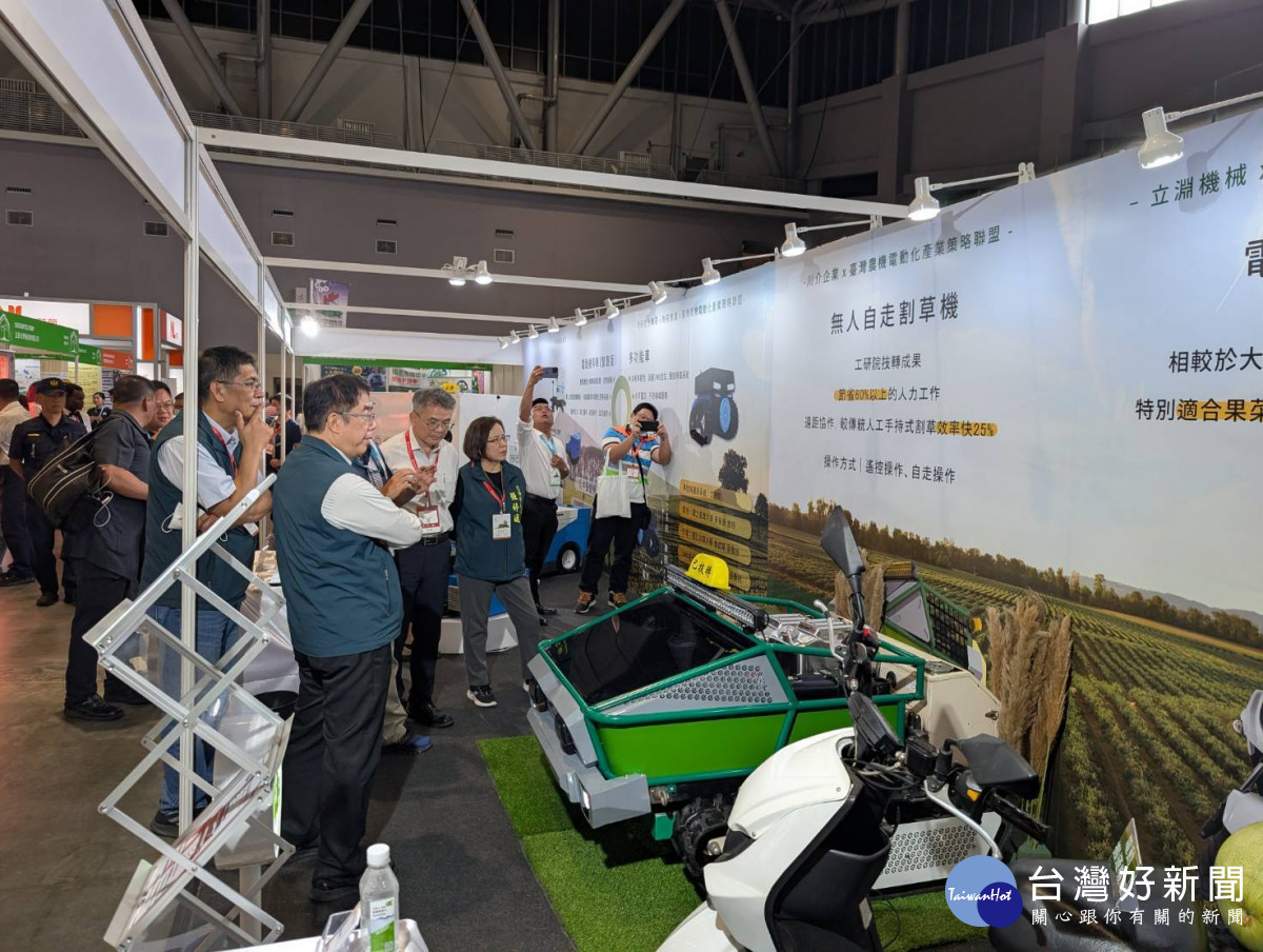 在黃偉哲市長到訪工研院展區時,中分院的人員介紹在臺南六甲開發出的農業用機器人,從柳營等酪農區的實務中,了解到酪農的工作繁重,人力不易新增,市面上的農機又多半是使用柴油的國外機種。因此工研院六甲院區開發出國產的電動機器人,可協助酪農進行自動餵料、除草、吸取牛屎、搬運等服務。不僅解決缺工焦慮,也可落實淨零碳排。