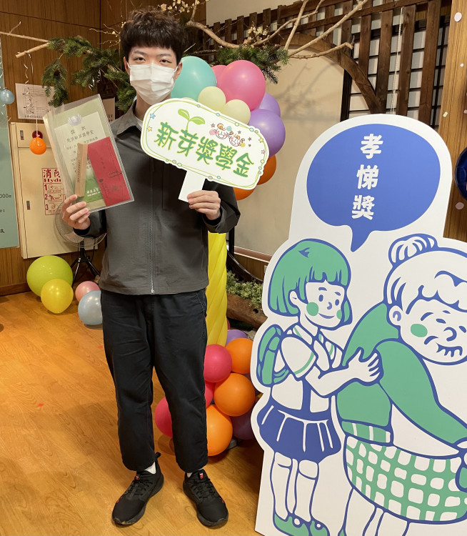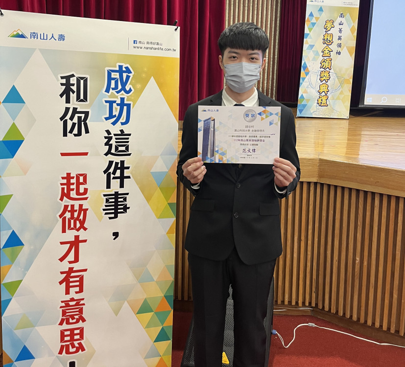 錢谷村也運用所學累積實戰經驗,大三至三商美邦人壽進行暑期實習,學業成績更名列前茅,每學期成績幾乎穩居前3,優異表現也獲得外部表揚,自111年起連續3年獲頒鴻海獎學鯨、慈濟新芽獎學金、南山菁英領袖夢想金、宗倬章獎學金,112及113年再榮獲摩根投信大專院校獎助學金,每一份都是對他努力肯定,也實際支持他完成學業。