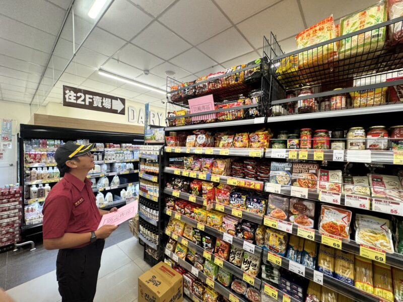 為協助民眾做好防颱準備,橋頭消防分隊特別向轄區內賣場進行宣導,建議業者在颱風來臨前設置「防颱專區」。這些專區集中擺放手電筒、電池、飲用水、泡麵等防災用品與食品,方便民眾採購應急物資。業者更貼心製作宣導看板,期望提升市民災前儲備的意識與意願。