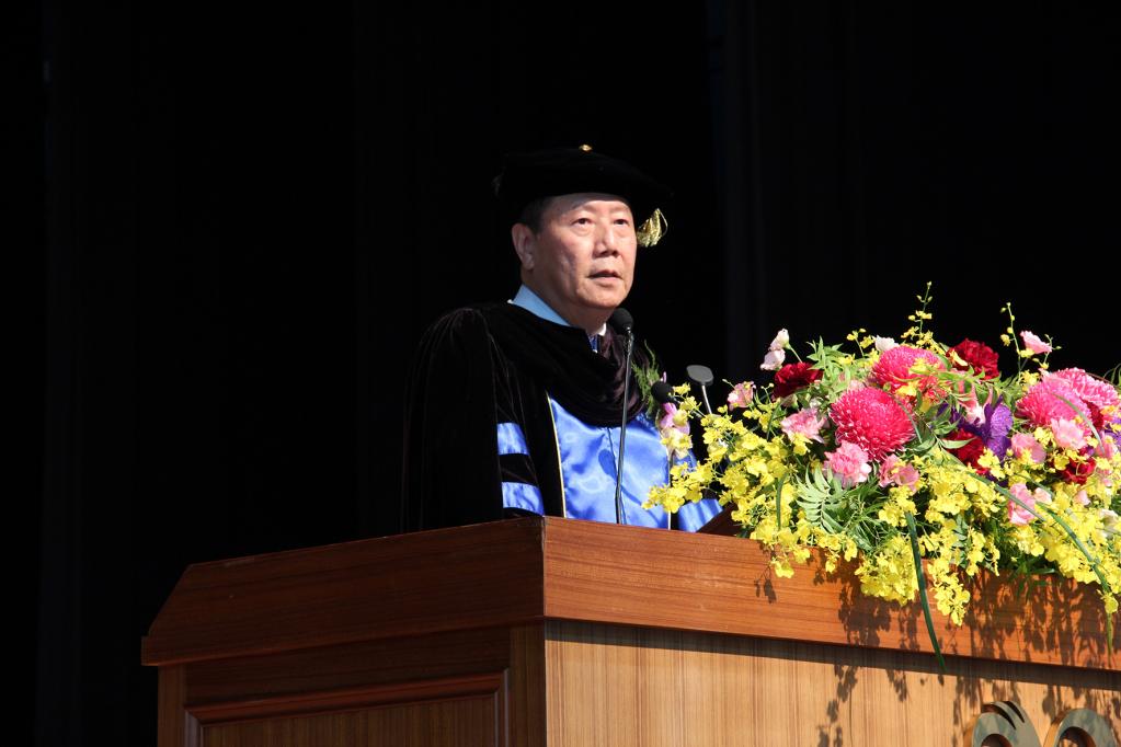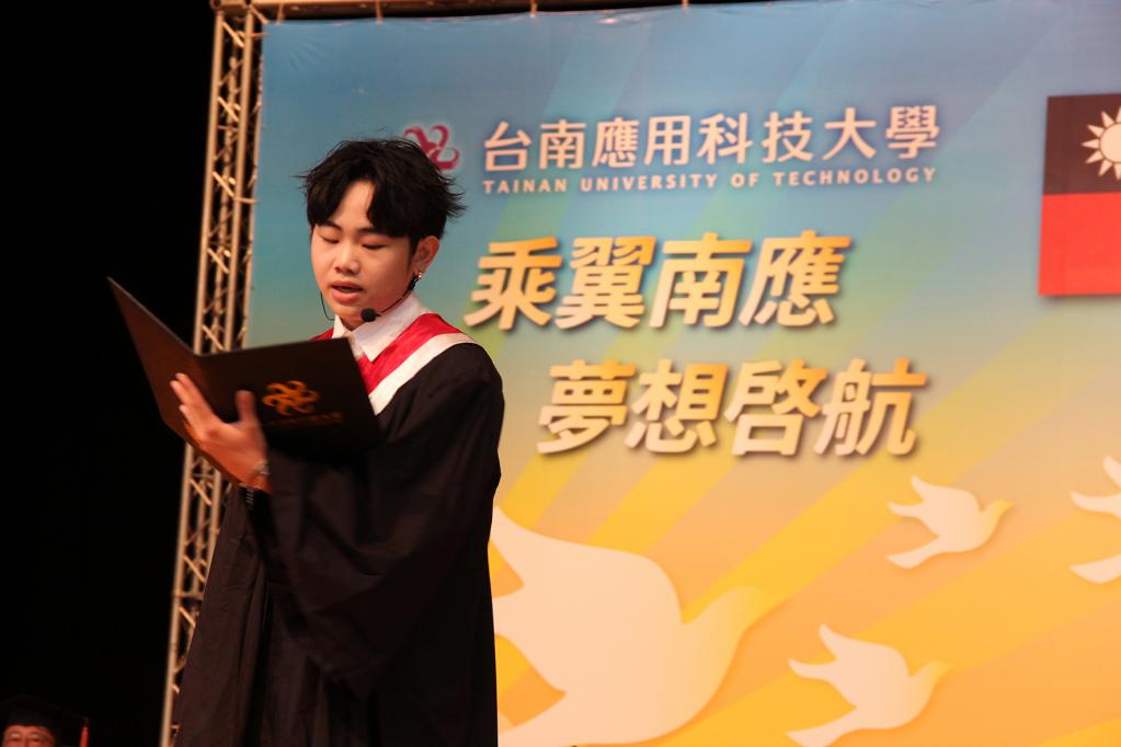 董事會黃基正董事長致詞深情勉勵畢業生:「感謝現場的所有家長、貴賓與師長,共同見證我們畢業生順利完成學業、揚帆啟航;本校擁有60年的歷史,在座的畢業生們在南應大美麗校園裡,接受了學校4年專業多元課程訓練,培養了人文藝術及職場所需實力;今後,同學們將提起最大勇氣面對變化萬千、充滿挑戰社會磨練,為了實現自己理想,各位仍要勤奮不懈,提升自我,自在圓滿;同時不要忘了以己之力,回饋學校與社會,用你們優秀表現做母校最好榜樣,台南應用科技大學將永遠以各位同學為榮,學校及董事會將永遠支持著每一位同學而努力」。