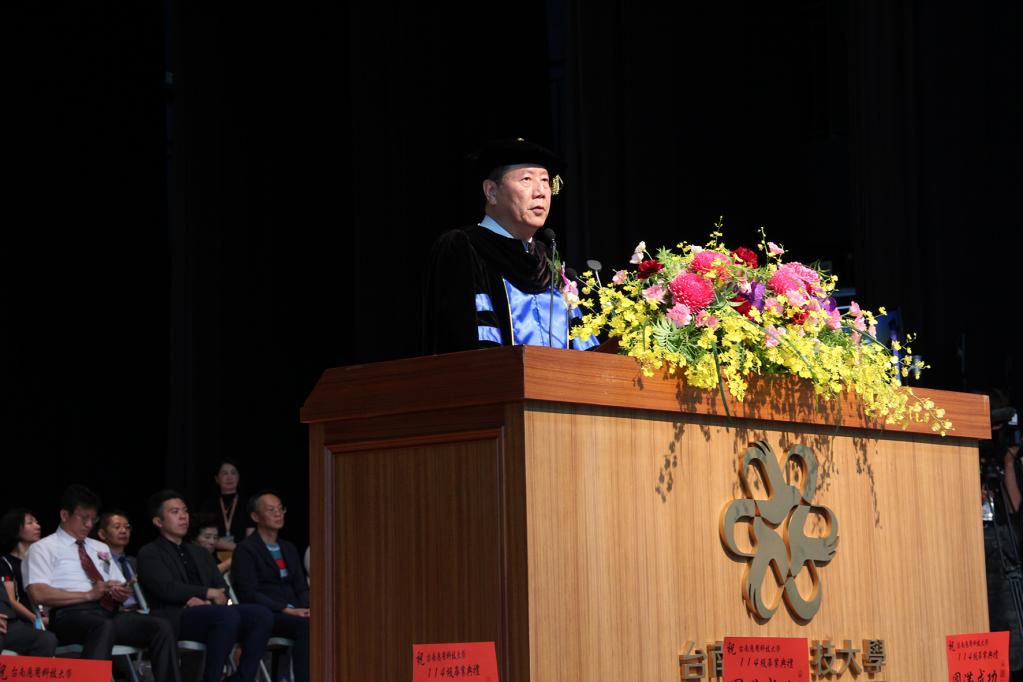 楊正宏校長則以「擁抱AI、無所畏懼」為題,勉勵畢業生面對生成式人工智慧引領新時代,要具備獨立思考力與判斷力,善用科技工具開拓視野,培養持續學習與跨域整合的能力;典禮中,校方特別頒發多項獎項予優秀學生,表揚他們在學術研究、創新設計、服務精神及領導能力上傑出表現,體現南應大「專業與人文並重、創新與實務並行」辦學理念。