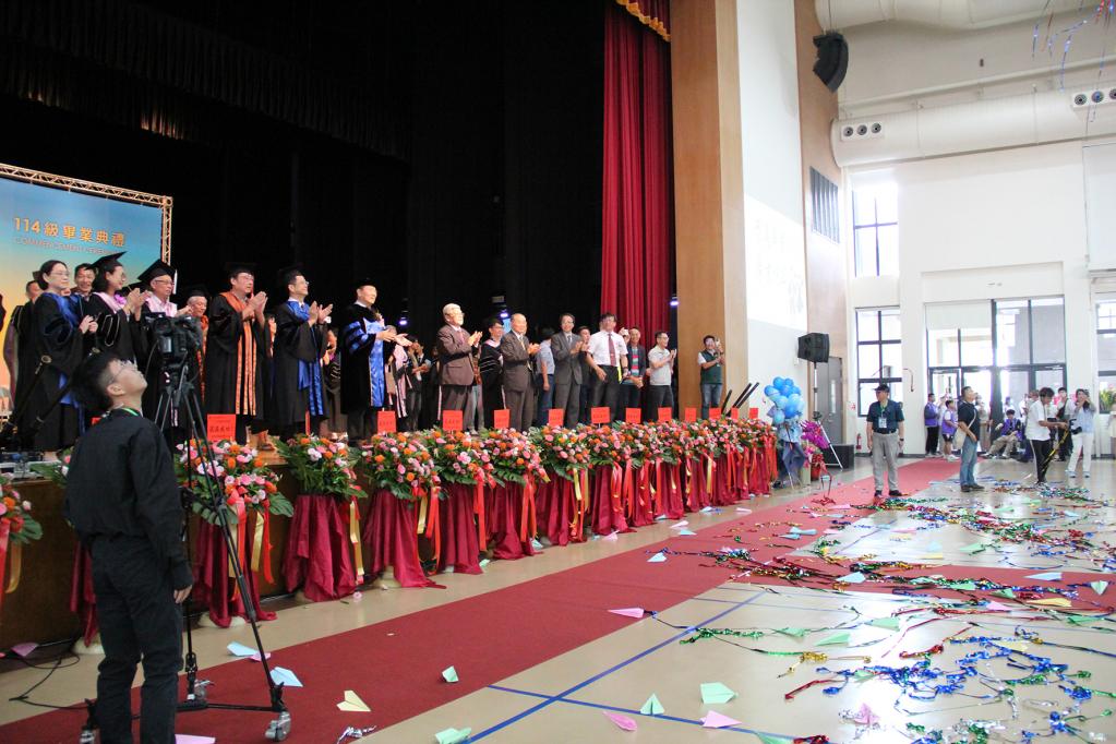 南應大114級畢業典禮貴賓雲集,蒞臨嘉賓包括:前校長陳豐村與陳鴻助、國立臺南家齊高中流行服飾科陳美貴主任、臺南榮家程少筱副主任、南大附中教務主任林立中、國立岡山農工學務主任、國立臺南高級商業職業學校林聰明校長;亞洲餐旅學校教務主任黃明韜、國立曾文農工總務主任陳姵妤、台南市工商發展投資策進會總幹事陳宗明、遠東商銀永康分行經理劉士旗、台南市刺繡商業同業公會理事長黃正忠、台南應用科技大學校友會全國總會理事長劉慶華、常務理事蘇雅汾、臺南市永康區副區長陳必成等,共襄盛舉,展現對畢業生最深祝福與勉勵。