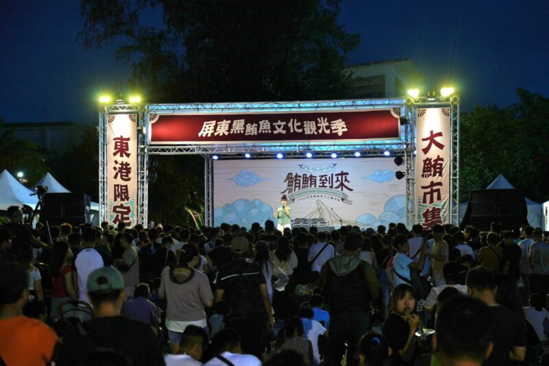 大鮪市集首(14)日熱力四射,由DJ坂本宗華率先開場,接連播放多首超嗨樂曲,瞬間炒熱全場氣氛,緊接著「local天團」玖壹壹重磅登場,台下粉絲們尖叫聲不斷,最後壓軸施放長達300秒的海洋煙火秀,絢爛煙火照亮整個大鵬灣夜空,現場氣氛嗨到最高點。
