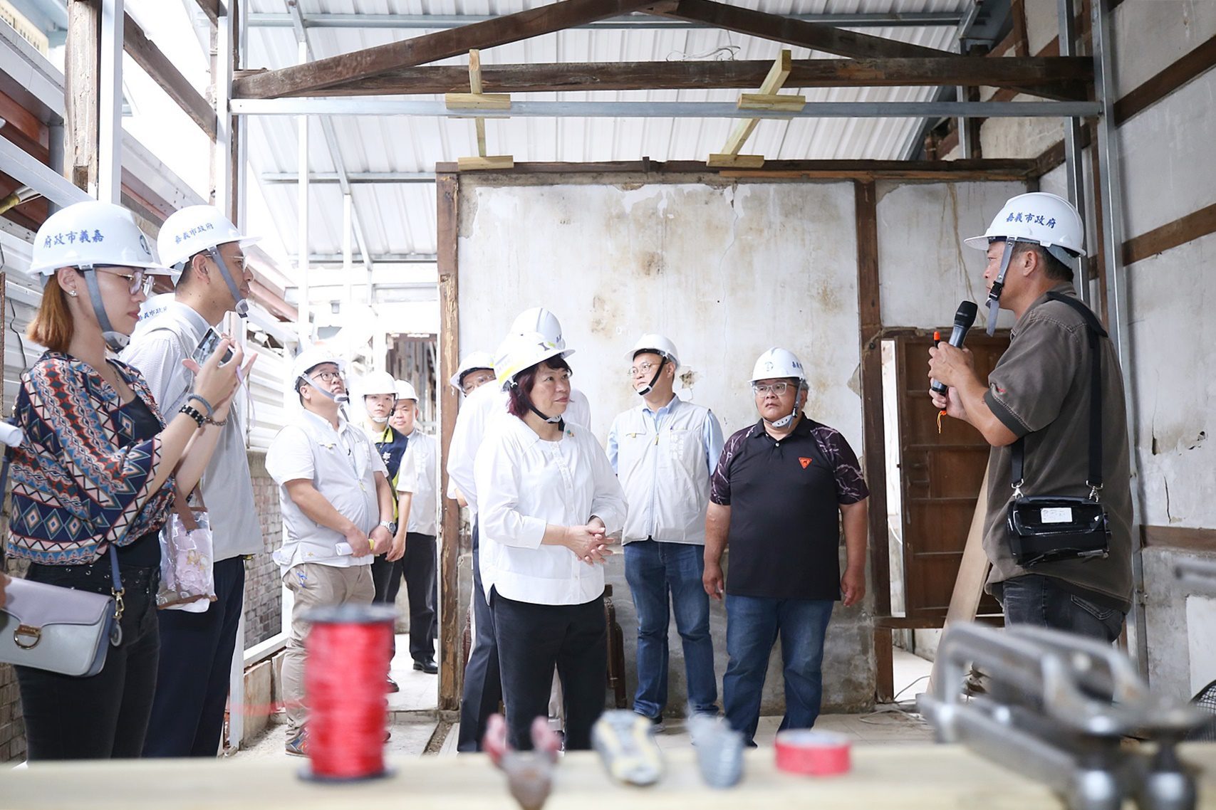 嘉義市政府「嘉有木屋」補助計畫,鼓勵民間結合專業建築團隊,以木都3.0新舊融合理念進行老舊木屋修繕、活化再利用。市長黃敏惠率領市府團隊前往中正路551號與中山路255、257號兩處補助修繕工程地點視察,實地瞭解工程現況。