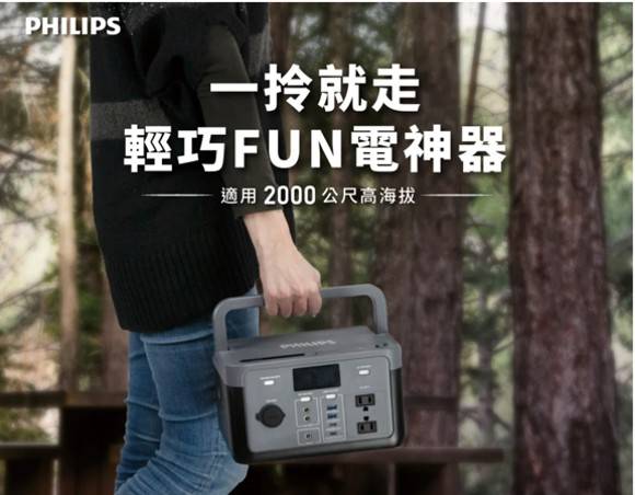 除新世代旗艦機型外,飛利浦也同步推出 300W 行動儲能小型機,重量僅 3.6 公斤,可輕鬆手提,搭載 AC 插座與 USB-C PD 快充、LED 照明與無線充電,適合日常隨身備電、行動辦公、外送員、露營新手等使用族群。