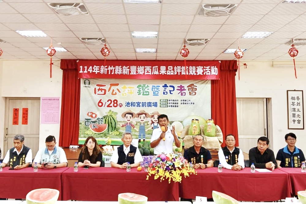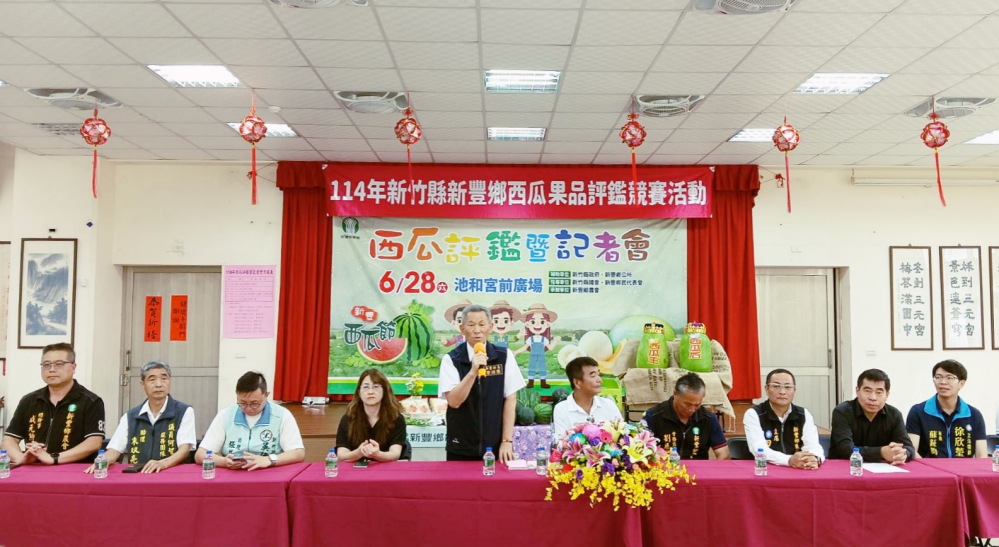 由新竹縣政府、新豐鄉公所及新豐鄉農會共同主辦的「114年度西瓜果品評鑑競賽」,今(6/17)日在新豐鄉中崙三元宮迎賓會館隆重舉行;至於年度農業盛會「西瓜、洋香瓜暨農特產品展售行銷推廣活動」,則將於與6/28日在新豐鄉池和宮前廣場盛大開催,新豐鄉農會理事長鄭清漢廣邀全國民眾共襄盛舉,親身感受新豐鄉最具代表性的短期經濟作物—「西瓜」與「洋香瓜」的鮮甜魅力。