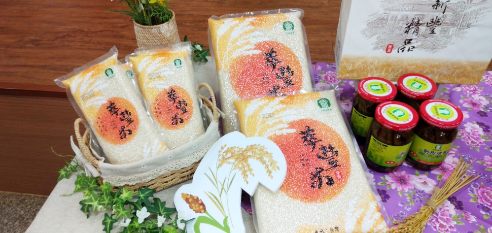 ▲「114年度西瓜果品評鑑競賽」今(6/17)日在新豐鄉中崙三元宮迎賓會館隆重舉行,現場展示新豐鄉農會品質優良的新豐米、剝皮辣椒等多項美味農特產品。