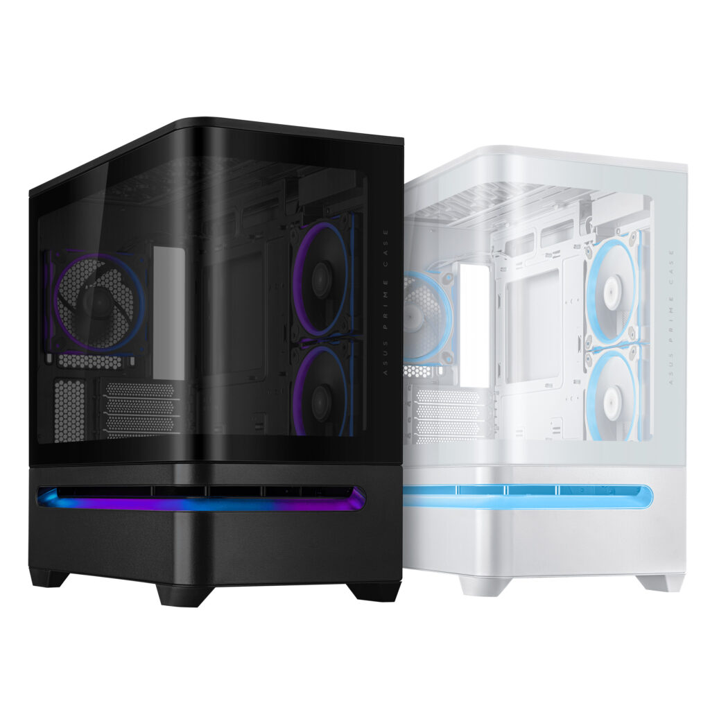 再現極簡美學的ASUS Prime AP202,提供星曜黑、晨曦白兩款配色選擇,可依個人喜好和硬體風格自由搭配;弧形玻璃面板從機殼正面無縫延伸至側面,可視角度更加開闊,完美展現內裝配置與裝機美學。