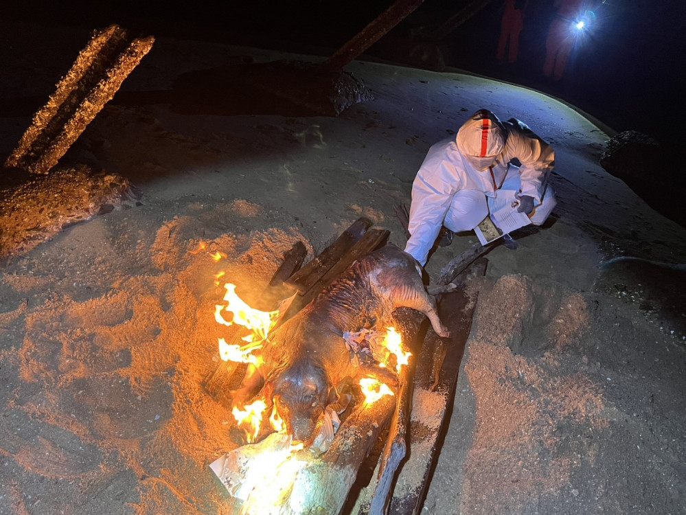 金門縣府說明,本縣防疫所於114年6月14日接獲海巡署金馬澎分署第九岸巡隊通報,發現金寧慈堤岸際有一隻漂流豬屍,防疫所同仁立即赴現場執行檢體採樣並就地焚燒掩埋該死亡豬隻,相關防疫作業人員已完成清潔消毒防護並進行豬屍發現地點之徹底消毒,檢體循例於第一時間送交農業部獸醫研究所以聚合酶鏈反應(PCR)進行檢測檢驗,結果非洲豬瘟病毒核酸呈陽性,且經病毒P72與B602L基因序列比對,與中國大陸流行之第二基因型非洲豬瘟病毒相似度達100%。
