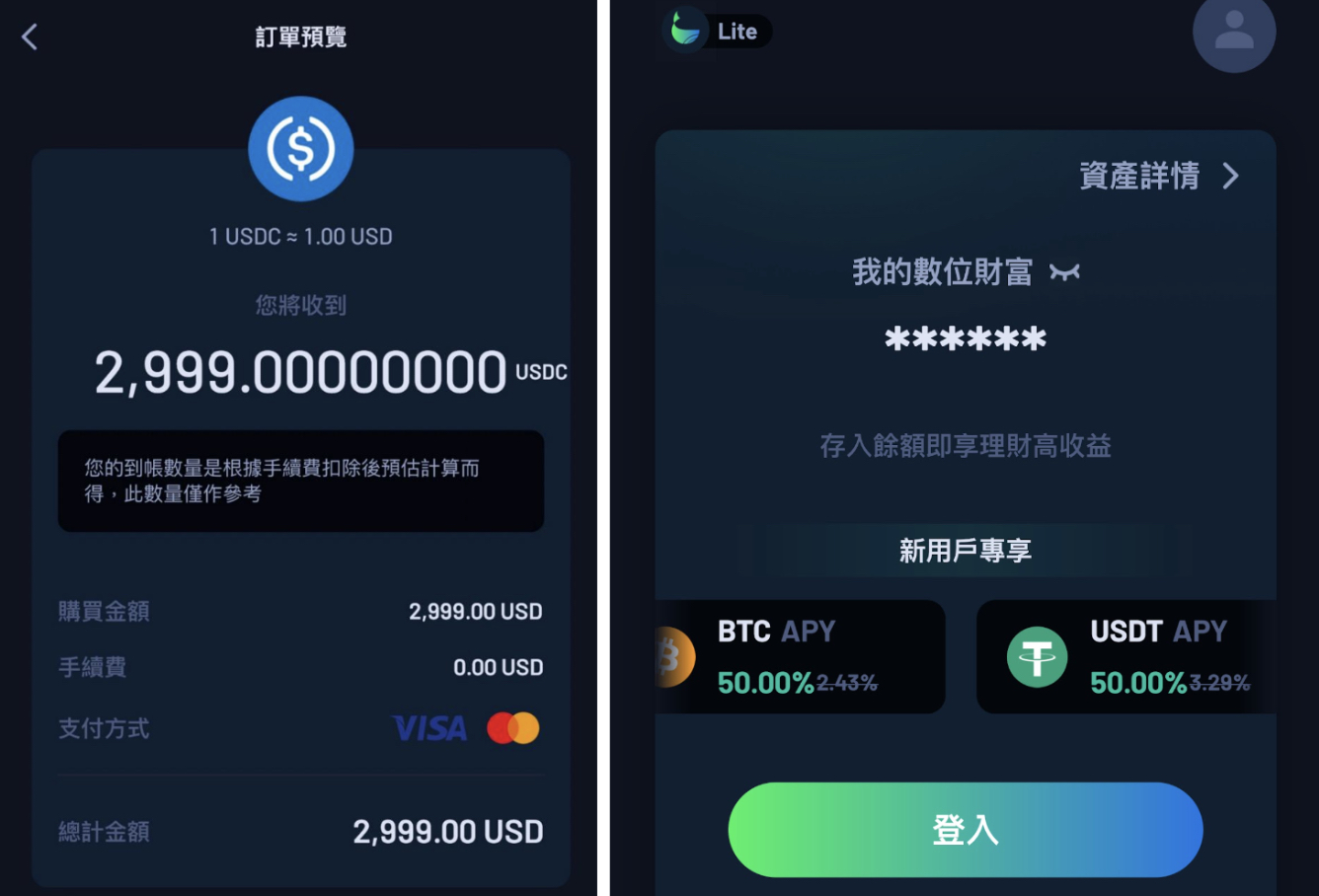 「如果要推薦的話,一定不能錯過線上刷卡買幣免手續費與 50% APY 的新手註冊活動!」John 興高采烈地說道,只要是新加入的用戶都在一定期間享有超高報酬的註冊優惠,包含比特幣、以太幣與 USDT 等,買 USDT 也能夠使用 Apple Pay 和 Google Pay 進行支付。