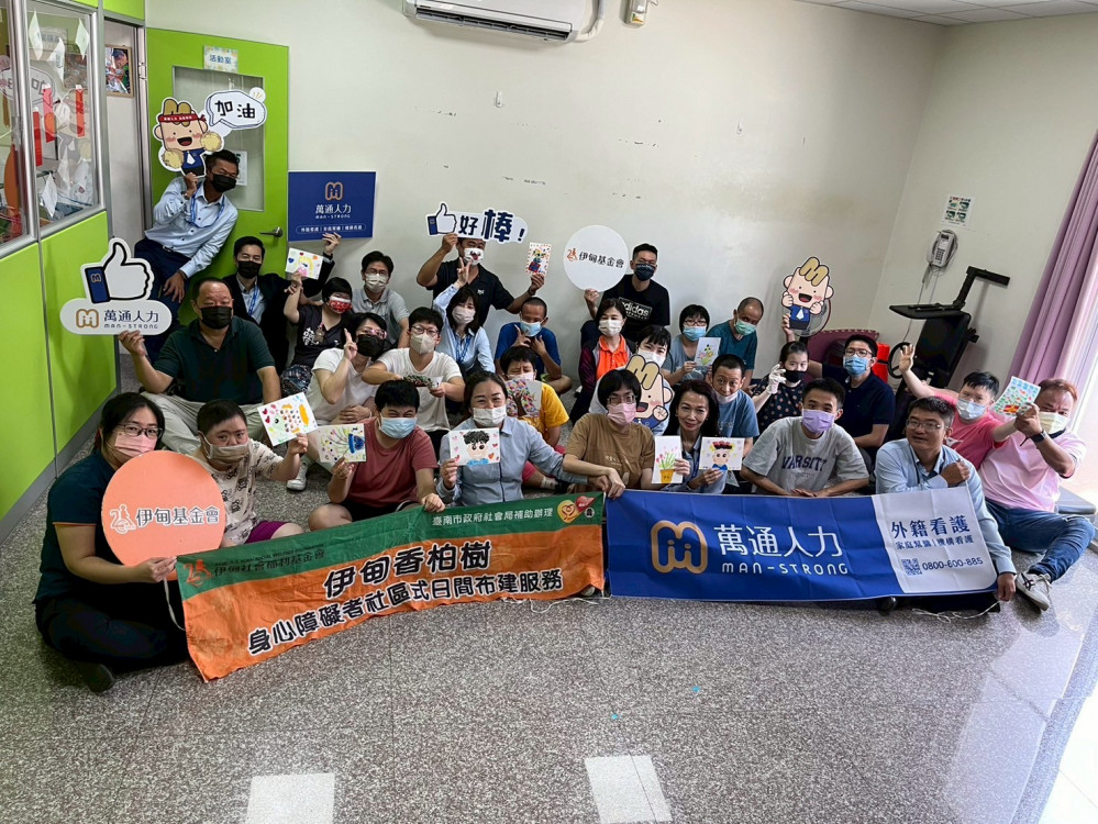 在萬通志工的耐心陪伴下,一張張色彩奔放、傳遞著愛與希望的創作就此誕生。伊甸香柏樹日照據點服務的對象為中重度障礙的學員,平時較難以言語完整表達內心情感,但在今天的共畫裡,志工們耐心鼓勵著著不同個性、不同障別的學員發揮創意,從選擇顏料、決定構圖,用畫筆盡情表達內心世界,每幅畫作都美的感動人心。萬通人力社福加盟事業群總經理殳蓁蓁表示:「我們希望透過實際公益行動,落實社會關懷,在每次的志工活動讓我們的加盟主夥伴深入了解照護需求與社會責任,也透過健身器材的導入,幫助身障朋友進行日常復健與身心鍛鍊,維持健康的體能。」