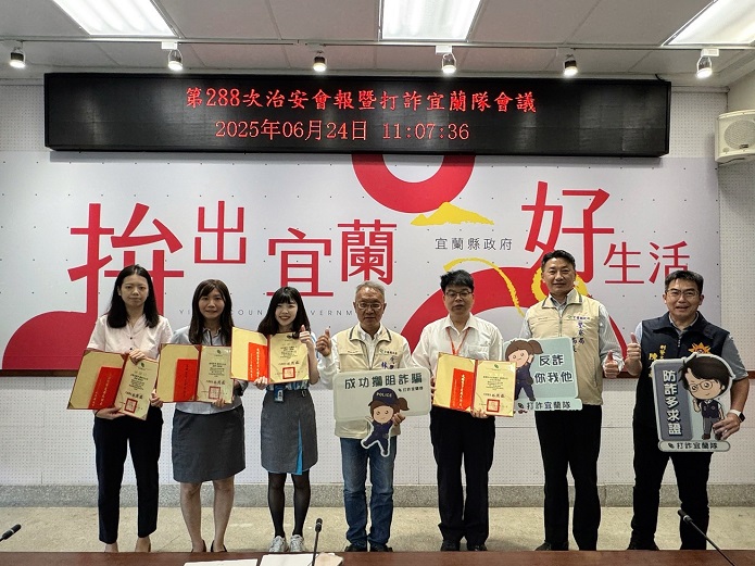 【記者 林明益/宜蘭 報導】宜蘭縣政府為感謝金融機構積極攔阻詐騙案件,代理縣長林茂盛於24日藉由治安會報表揚機警行員之義行,並頒發感謝狀予有功人員,期望透過公開表揚方式,強化全民打擊詐欺犯罪信心,暢通警民良好之通報機制。