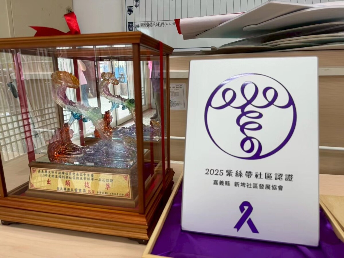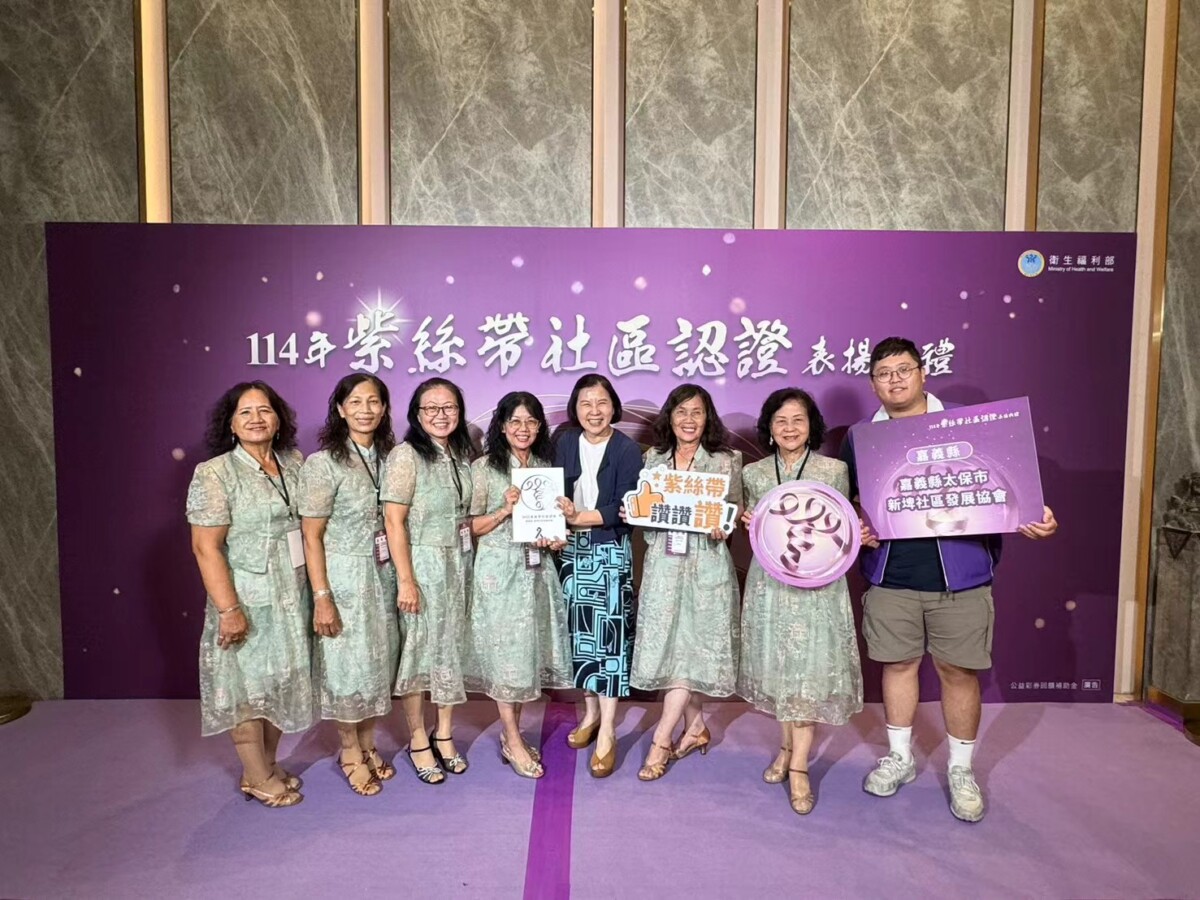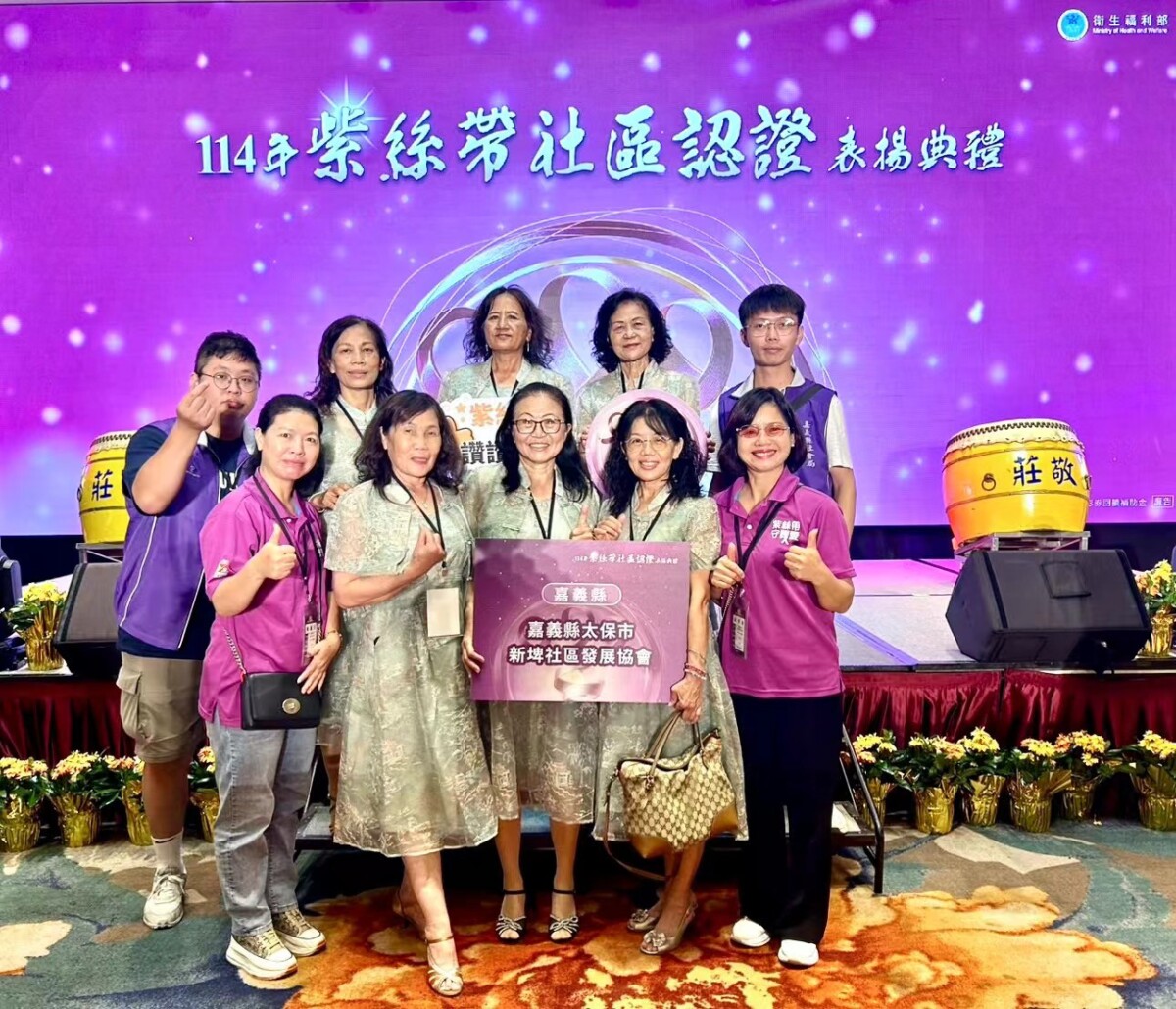 【記者 吳瑞興/嘉義縣 報導】嘉義縣政府輔導太保市提報衛生福利部113年紫絲帶社區初級預防認證獎勵計畫,由新埤社區申請順利通過一朵紫絲帶認證,社會局長張翠瑤今(24)日代表縣長翁章梁,偕太保市長鄭淑分、縣議員黃榮利等民代張貼紅榜,肯定新埤社區的卓越表現。