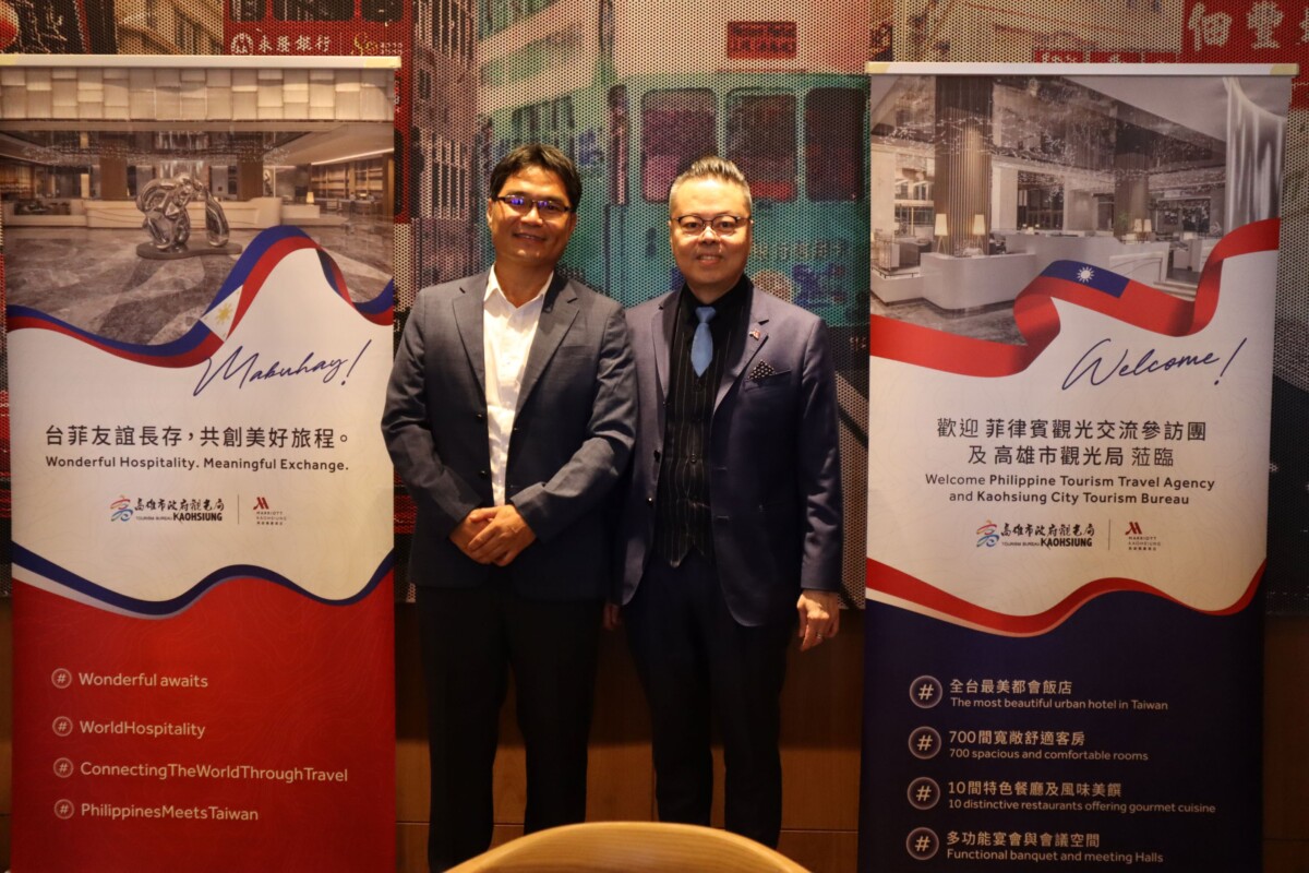 ▲高雄市政府觀光局孫春良副局長(左)親自蒞臨指導,並與高雄萬豪酒店總經理Tony Wong(右)一同出席歡迎午宴,展現市府與民間攜手推動國際旅客來訪的觀光商機。