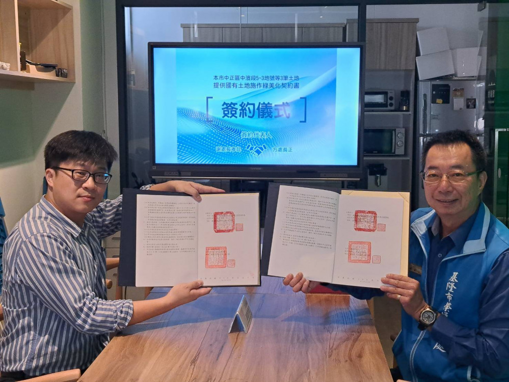 【勁報/基隆報導】基隆市政府於109年間,受文化部補助辦理「大基隆歷史場景再現整合計畫」之子計畫-「基隆沙灣地區歷史環境願景再生暨城市景觀再造計畫」,與國軍退除役官兵輔導委員會研商達成共識,提供基隆市榮服處所管理之「要塞司令部校官宿舍」旁之部分國有地,以為市定古蹟之整體環境規劃,後達成協議由市府與榮服處於111年6月間簽定「國有土地綠美化契約」,其後由市府文化局及都發處合作,完成該地之整體環境整建及綠美化,提供民眾良好的古蹟參觀環境;該契約迄今屆期,24日上午,基隆市政府由都市發展處代表,邀請基隆市榮服處續行簽訂該項契約,雙方由都發處謝孝昆處長代表,榮服處由方正處長代表,於市府都市發展處共同完成續約簽訂。