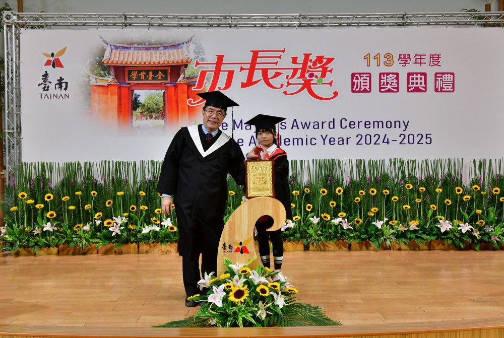 獲市長語文獎的永康區崑山國小蔡兆勛同學,品學兼優、敬師樂群,學業成績名列前茅,尤以語文表現最為出色,屢次於校內外競賽中獲獎,特別在閩南語朗讀比賽中表現亮眼,被譽為「常勝軍」。畢業典禮當天,更以流利台語擔任畢業生代表致詞,誠摯表達對師長的感謝,展現對母語文化的傳承使命,感動全場。此次榮獲市長獎,實至名歸,是學弟妹們學習的楷模。