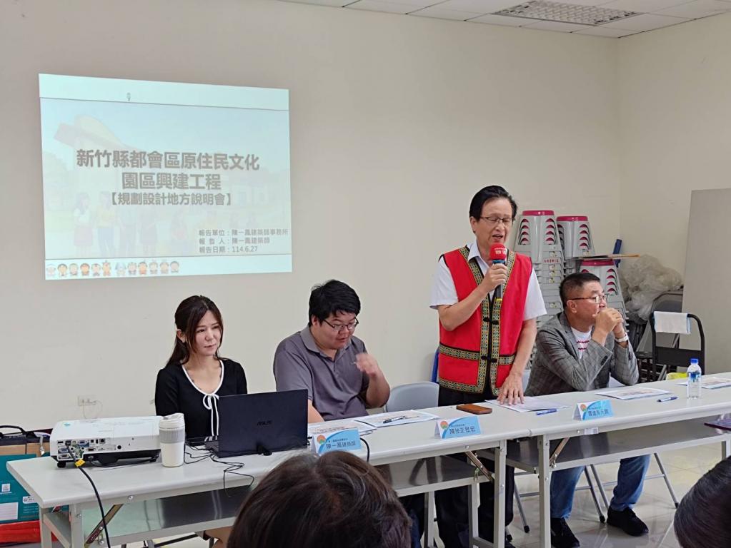 ▲竹縣府規劃於竹北市舊港段新港小段設置「新竹縣都會區原住民文化園區」,今(6/27日)在白地里舉辦地方說明會。(圖/竹縣提供)