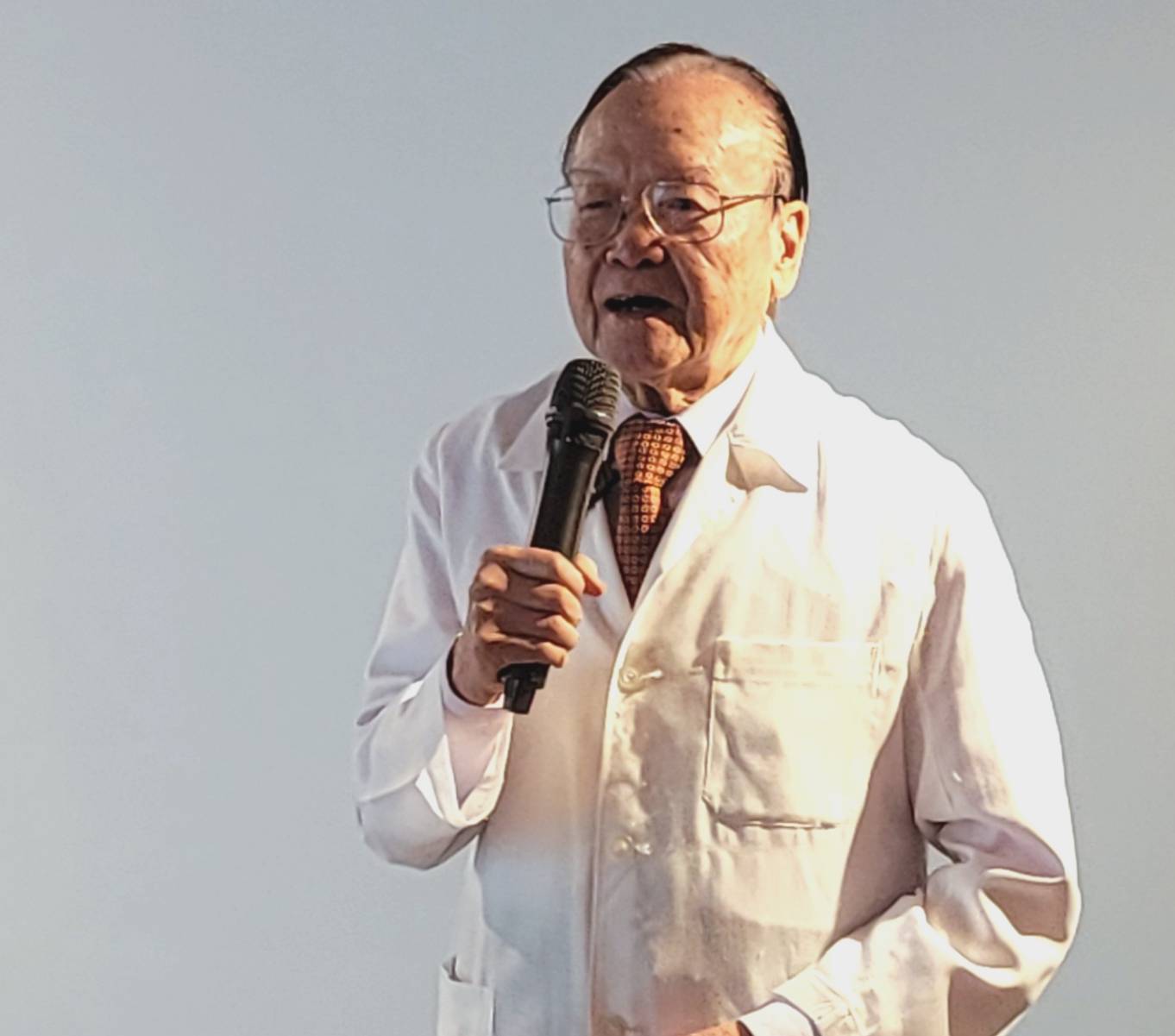 高齡95歲的陶聲洋防癌基金會董事長陳光耀致詞時說明防癌的重要(圖:虞煥榮/攝)。