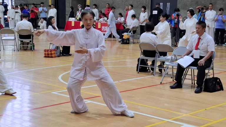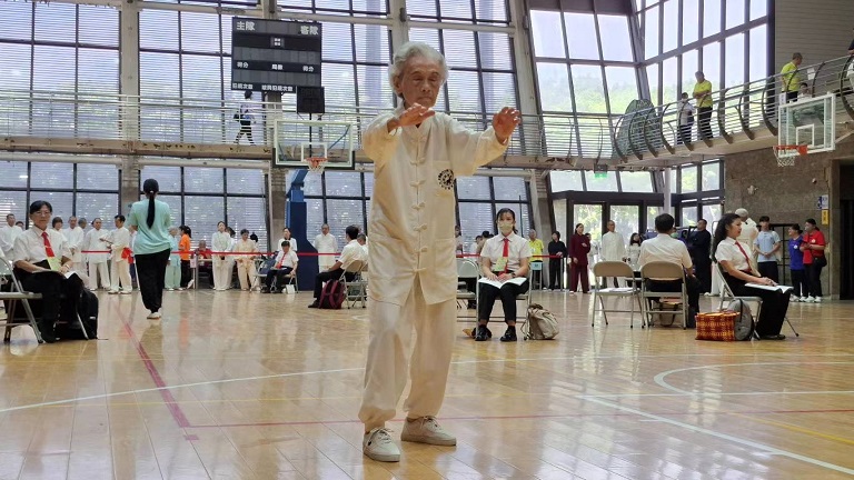 圖說:114年第13屆鄒阿真盃全國太極八卦掌錦標賽,今(28)日於嘉義市玉山國中體育館舉行,共有來自全國各縣市68個單位近500位選手参加,年齡最高者為98歲的歐識女士及長青女子組溫淑美則一人勇奪4項金牌,累積金牌數高達103項金牌,是本次錦標賽最大贏家,都成為本屆錦標賽的最大焦點。(記者吳瑞興攝)