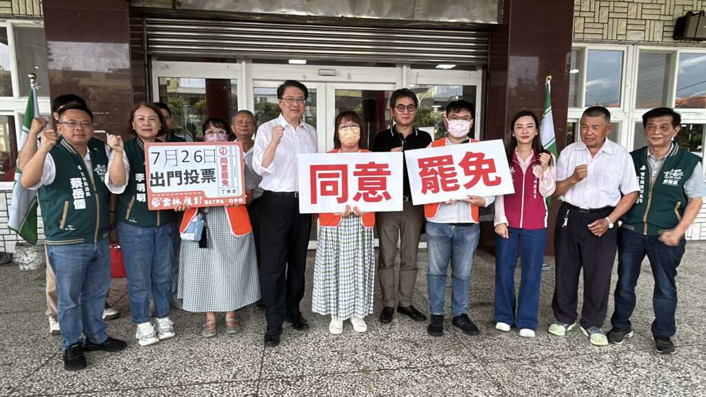 林右昌以黨中央之姿親赴第一線,就是要展現挺罷免的決心。(記者廖承恩翻攝)民進黨雲林縣黨部主委劉建國也強調,中央與地方團結一心,就是要替地方罷免團隊撐腰打氣。他說,眼前的國會亂象,讓台灣自由民主的基礎岌岌可危,人民盼望國會早日回歸正軌。劉建國相信,隨著地方動能匯集,罷免行動終將開花結果。