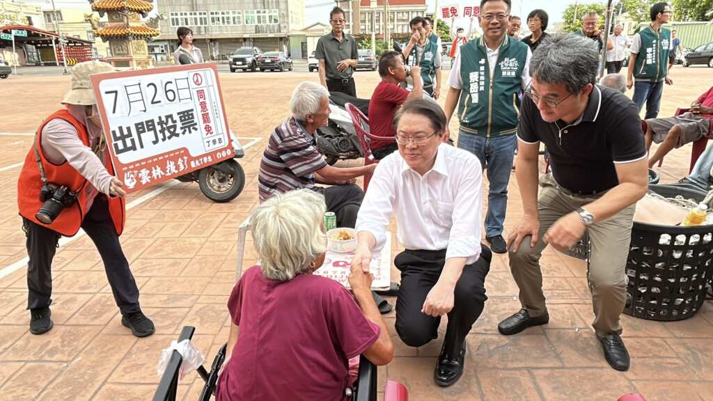 林右昌在劉建國陪同下呼籲支持大罷免行動。(記者廖承恩翻攝)林右昌強調,雲林是台灣民主的重要戰線,今日他以黨中央之姿親赴第一線,就是要展現挺罷免的決心。他呼籲在地民眾不要再讓立法院成為傅崐萁操弄的舞台,也不要再讓丁學忠這種沒有靈魂的傀儡繼續坐領高薪、危害國家。他說:「罷免不是政治鬥爭,而是人民的自救。」