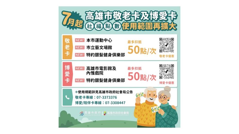 高市敬老卡、博愛卡7月1日起再擴大用途!